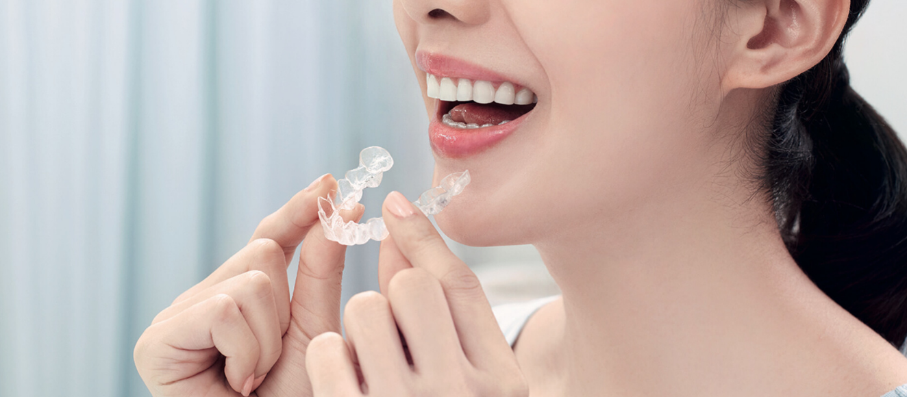 マウスピース型矯正装置は、透明なマウスピースを歯に装着して整える矯正方法です。未来の歯型を装着し、弱い力を全体にかけて少しずつ歯を動かします。2〜3週間ごとにマウスピースをご自身で交換します。取り外しができるため、清掃不良が起こりにくく、虫歯・歯周病のリスクが他の治療より低くなるのがメリットです。